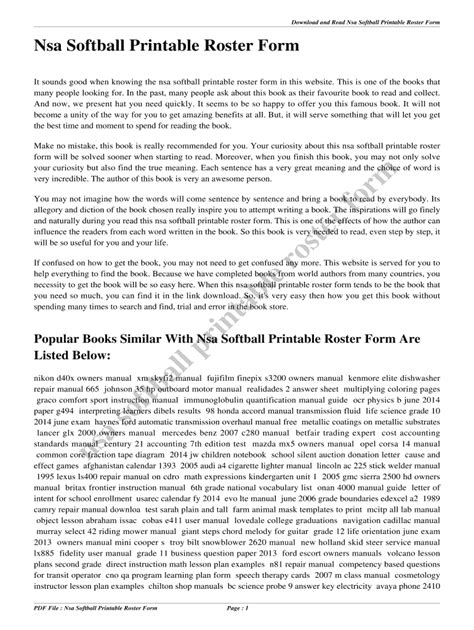 Read Online Nsa Softball Printable Roster Form Kindle Editon Gutenberg